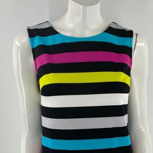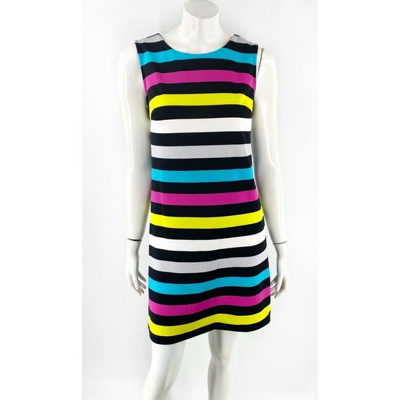 Worthington Shift Dress Small Black Pink Blue White Striped Scuba Knit Stretch