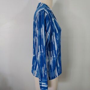 Worthington Shirt Top Flowy Womens Size Medium Button Up Blue White Long Sleeve