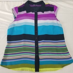 Worthington Shirt Womens Medium Multicolored Top Striped Sleeveless Button Up