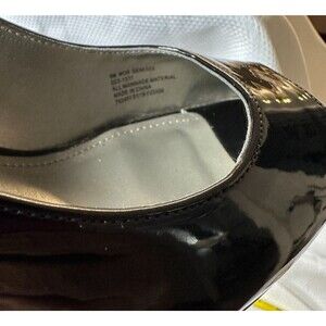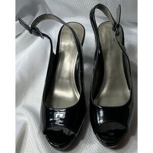 Worthington Shoes Sz 8M BLK SlingBack Patent Adjustable Open Toe Heels Pumps