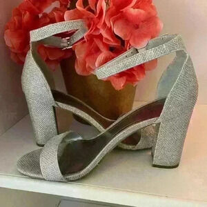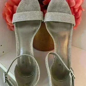 Worthington Silver Mesh Glitter Block Heel 3.75”.. Ankle Strap Size 8