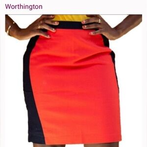 Worthington Size 14 Orange & Navy Color-Block Pencil Double Side Zippers Skirt
