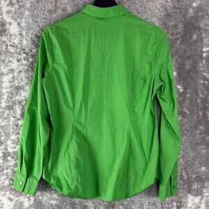 Worthington Size 4 Stretch Casual Button Top Green Long Sleeve Collar Cotton
