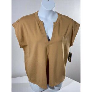 Worthington Size XXL Honey Gold Cap Sleeve Relaxed Fit Split Neck Blouse NEW
