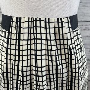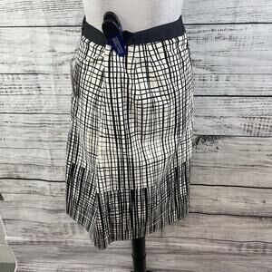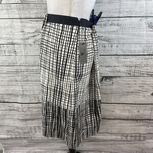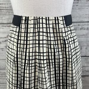 Worthington Skirt size 10 Ivory Black Plaid Pleated Knee A Line Stretch Modest