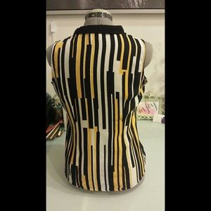 Petite. Polyester. Button down. Very comfortable! Worn once!