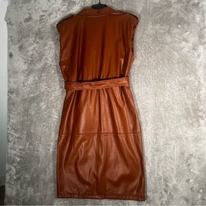 Worthington Sleeveless Jacket Wrap Dress Brown Faux Leather Belt Size Large
