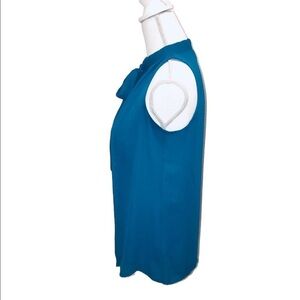 This is a gorgeous teal sleeveless button up blouse with a great tie neck.
