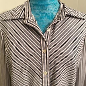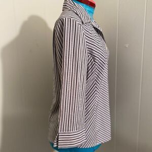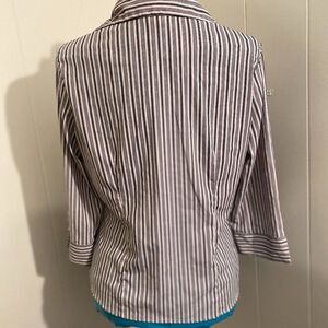 Worthington Stretch Button Up 3/4 Sleeve Stripped Womens Top Size L