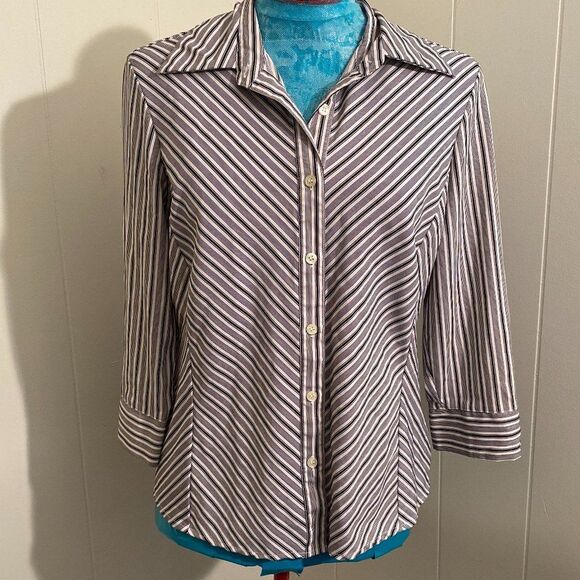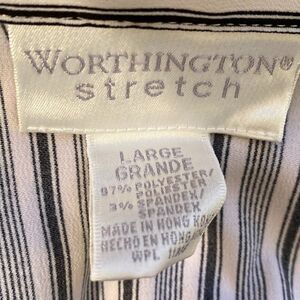 Worthington Stretch Button Up 3/4 Sleeve Stripped Womens Top Size L