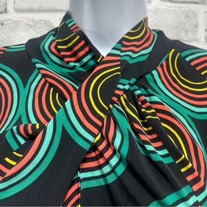 Worthington Stretch Retro Psychedelic Mock Neck Blouse Medium