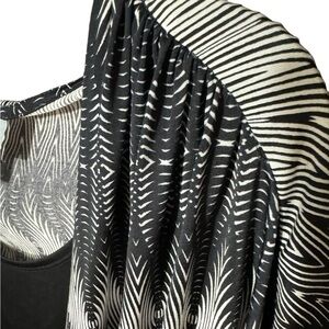 Faux Wrap Black and Off White Dress Top with Black shirt insert for coverage