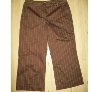 Worthington Stretch Womens Suit Size 10 Brown White Striped Jacket Crop Pants