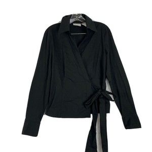 Worthington Stretch Top Womens Size 12 Black Wrap Up Fitted Long Sleeves
