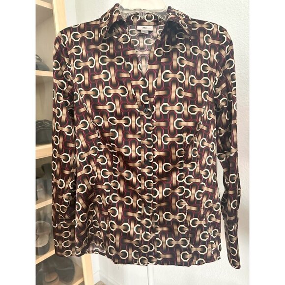 Long Sleeves. Geometric Pattern. Black, Burgundy and Tan. Perfect for office.