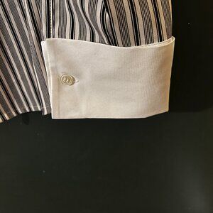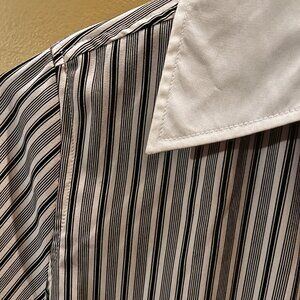 Worthington Stretch woman's polyester/spandex dress shirt, size M, white with black stripes, French cuff sleeve, like new