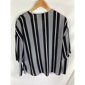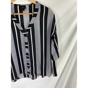 Worthington Stripe Button Up Half Sleeve Blouse Size Medium