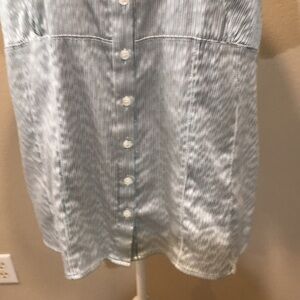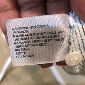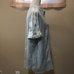 Worthington Striped Cotton Blend Blouse Button Front Short Sleeves Round Hem-2X