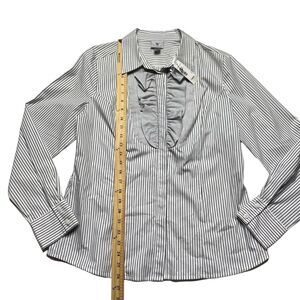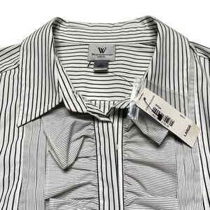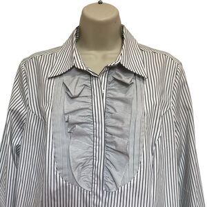 Worthington Striped Tuxedo Ruffle Button Down Shirt Sz L NWT