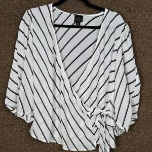 Worthington Stripped Wrap Blouse PL White and Black- Pre-Owned