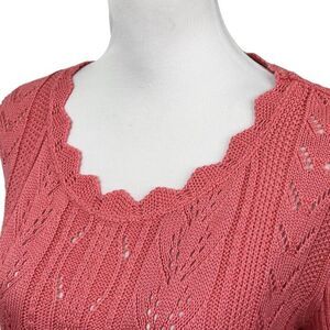 Worthington Sweater Top Size L Orange Scallop Neck Pullover Long Sleeves Knit