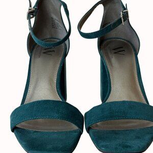 Worthington Teal Block Heel Sandals 9M Open Toe Ankle Strap Suede Dress Shoes