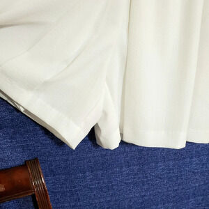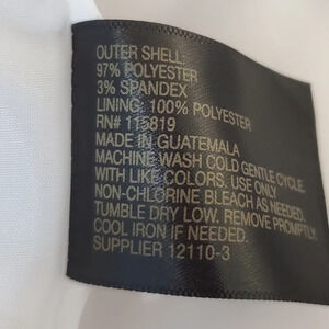 Hook and eye, zipper side closure. Pleats and gathers at waistline. Lined.