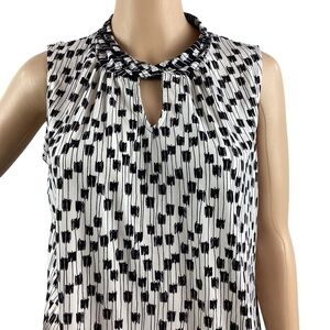 Design features: sleeveless, keyhole neckline, band at the bottom