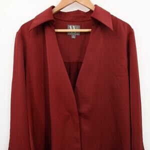 Elevate your style with this Worthington top. In a red maroon blazer style with long sleeves and a collared design, this top in size XL is new with tags, although it is missing the belt as shown in the photo.