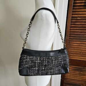 Worthington Tweed Chain Shoulder Bag w/ Gem Hardware — Classic Evening Baguette