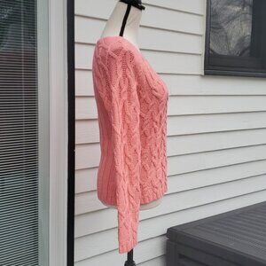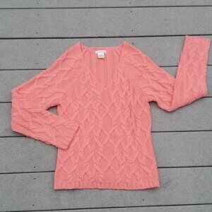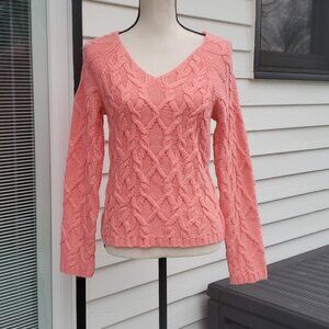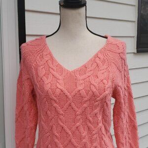 Worthington size small coral colored v-neck cable knit sweater. oversized neckline. Excellent like new condition