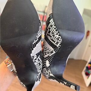 Elevate your style with Worthington's sleek black and gray heels, perfect for any occasion. These heels feature a contemporary design that seamlessly blends elegance with comfort. Crafted with precision, they offer a sophisticated touch to any ensemble. Vegan faux leather material. Like new condition, no flaws.