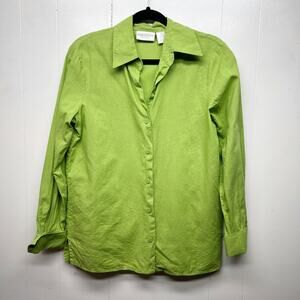 Worthington Vintage Line Cotton Lime Green Button Front Womens Shirt Size Small