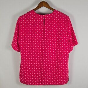 Worthington Vintage Pink Geometric Blouse Large Short Sleeve Mod Retro 80s