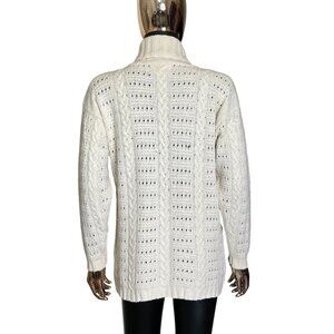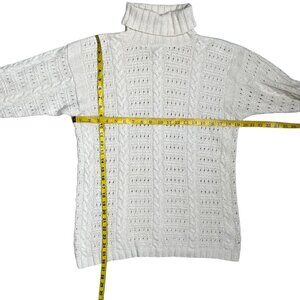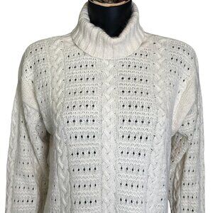 Worthington Vintage Silk Angora Blend Cable Knit Turtleneck Sweater Cream Large
