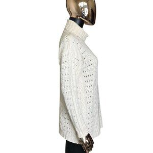 Vintage Worthington Petite. Size Large (12P/14P). Cream/ivory open-stitch cable knit, turtleneck neckline, ultra-soft silk/angora/nylon/lambswool blend, warm but lightweight, gorgeous texture, classic relaxed vintage fit.