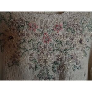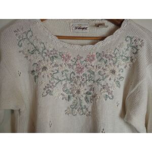 Worthington Vintage Sweater Medium White Flower Embroidered Lacy Granny Grandma