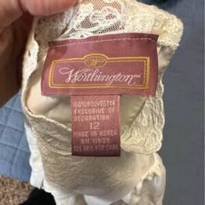 Worthington Vintage White pleated lace Top Made in Korea Sz12 Long Sleev #1020