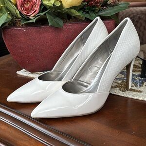 Worthington White Faux Patent Leather Snakeskin Pointed Toe Heels 80s 90s Pumps. 4" heel.