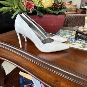 Worthington White Faux Patent Leather Snakeskin Pointed Toe Heels 80s 90s Pumps. 4" heel.
