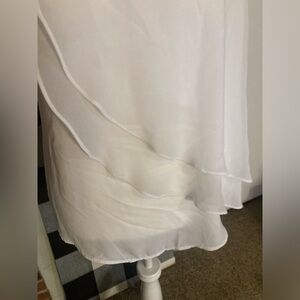 Elegant white tank top. Features layered design. Sleeveless and stylish. Beautiful top. It just didn’t fit me.