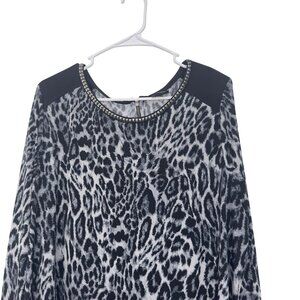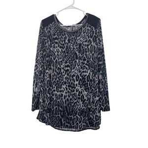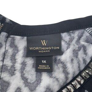 Worthington Woman 1X Long Sleeve Animal Print Tunic Top With Studded Neckline