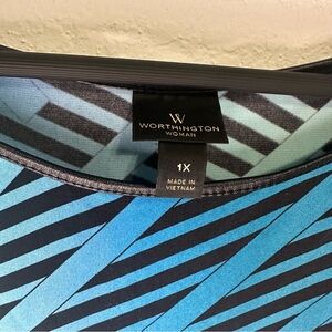 Worthington Woman Blue & Black Geometric Tunic Top – Size 1X