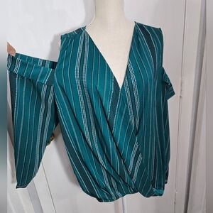 Worthington Woman Striped Cold Shoulder Faux Wrap Blouse Sz 0x