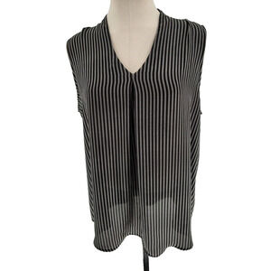 Elevate your wardrobe with this stylish Worthington black and white striped shell top. The pleated front adds a touch of elegance to this basic style. The wide straps and sleeveless design make it perfect for a summer day out or for layering under a blazer for a business casual look. The microfiber fabric with a touch of spandex ensures comfort and a flattering fit. The V-neckline and sheer features add a feminine touch, while the classic black and white striped pattern gives it a timeless appeal. This top is machine washable for easy care and maintenance. Make a statement with this versatile and chic tank top that's perfect for any occasion!
