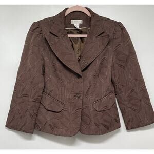 Worthington Women Brown Textured Blazer Jacket Vintage Style Size 10 Career
