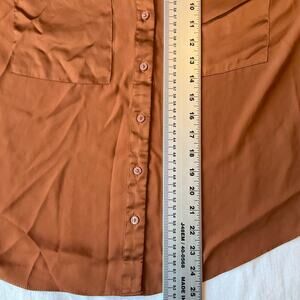 Worthington Women Shirt size M Button Down Long Sleeve Silky Soft V-neck Brown