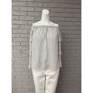Worthington Women Stripe Off Shoulder Tiered Sleeve Blouse Size M