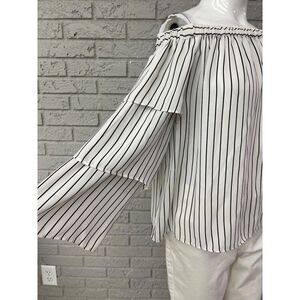 • Worthington Women Stripe Off Shoulder Tiered Sleeve Blouse Size M