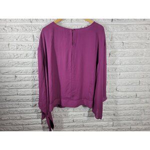Worthington Women Top 2X Plus Asymmetric Sleeve Purple Tie Hem Keyhole PUR62E